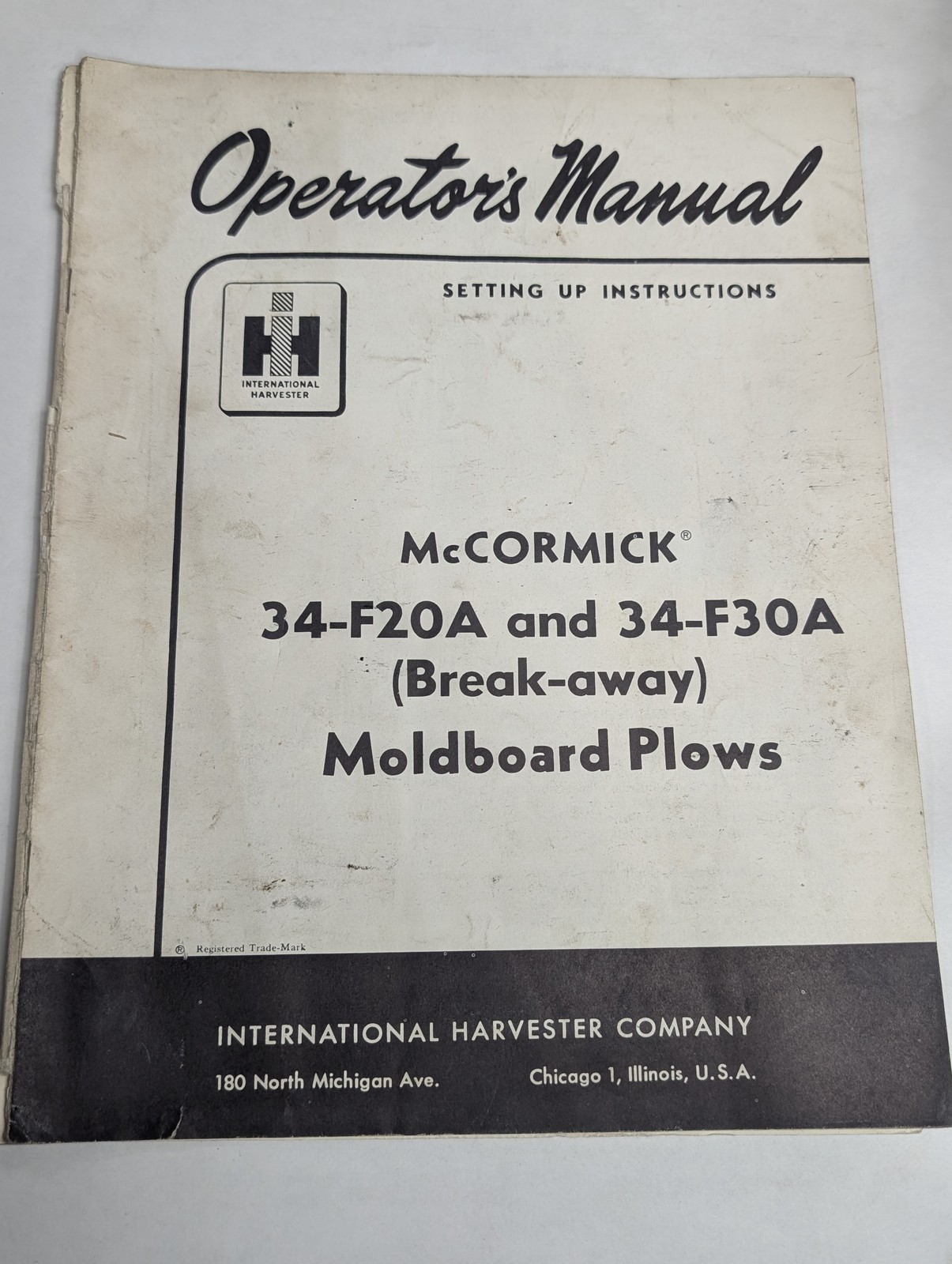 International Ih Operator’S Manual Mccormick 34-F30A 34-F20A Break-Away Plow