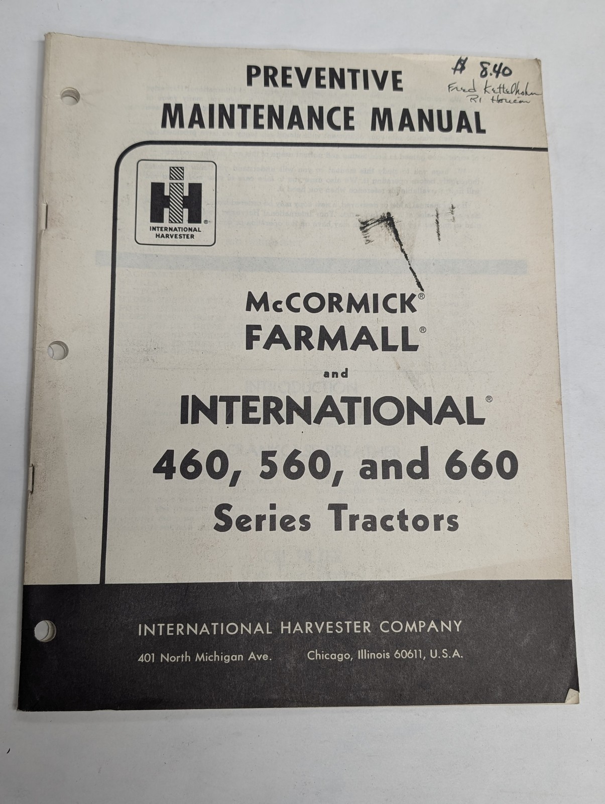 International Ih Prev. Maintenance Manual Mccormick Farmall 460 560 660 Tractors