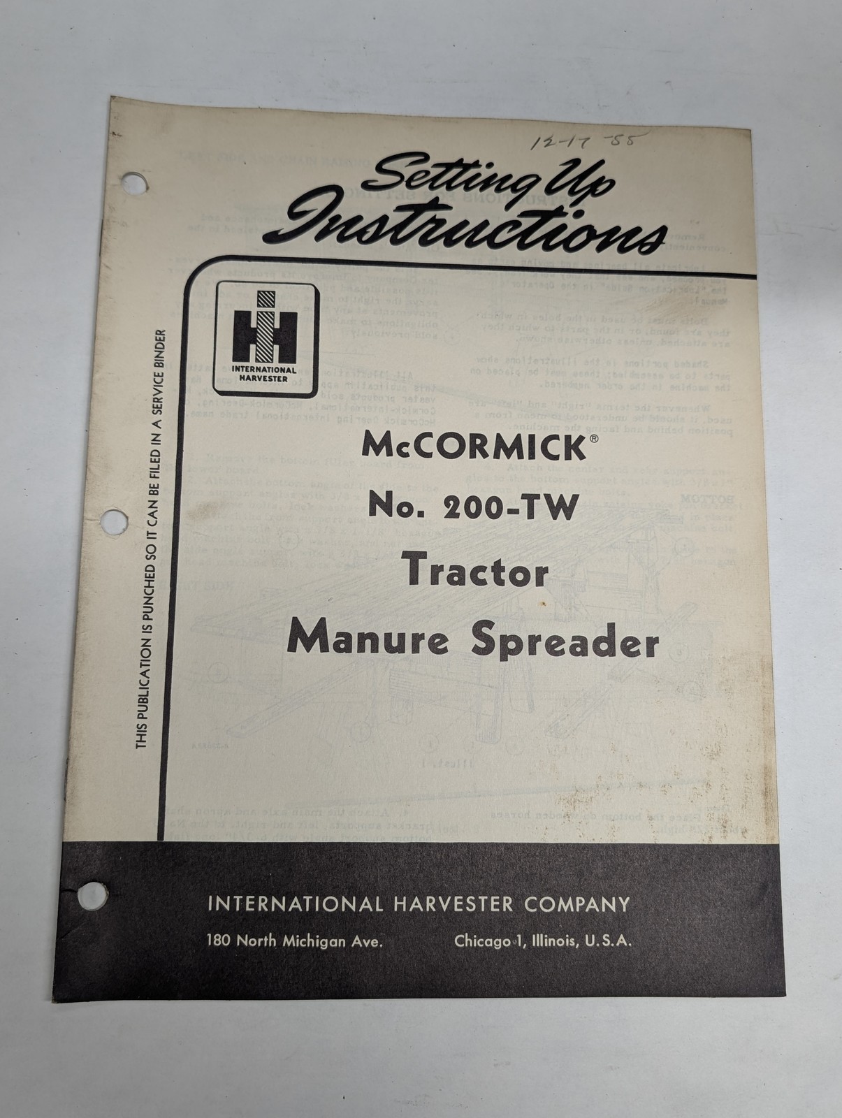 International Ih Setting Up Instruction Manual Mccormick #200-Tw Manure Spreader