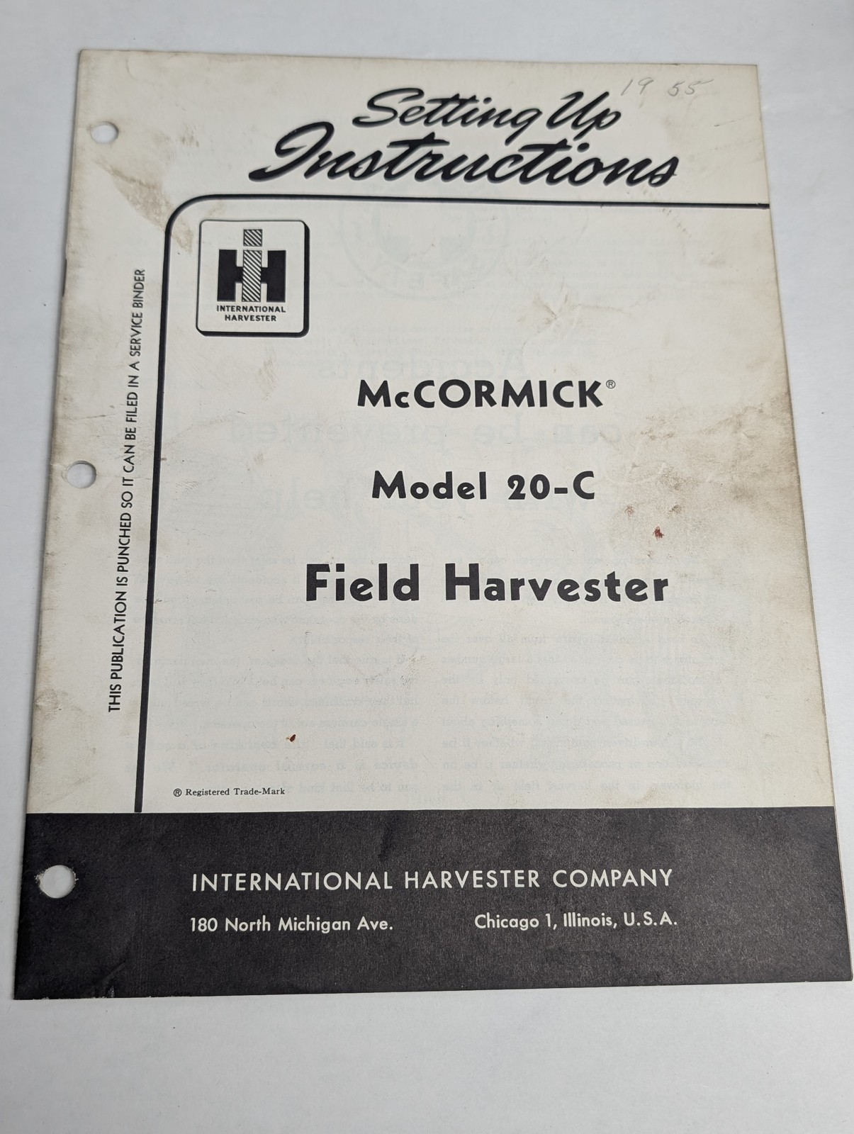 International Ih Setting Up Instructions Mccormick 20-C Field Harvester