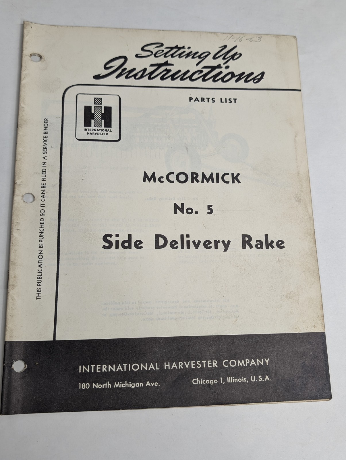 International Ih Setting Up Instructions Mccormick #5 Side Rake Parts List