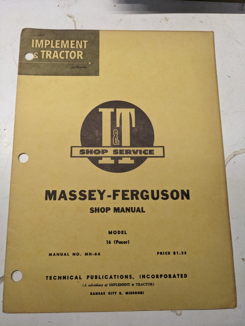 I&T It Manual Shop Book Service Massey Ferguson Mf 16 Pacer Model Mh-6A