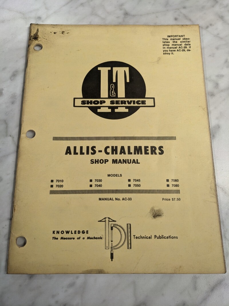 I&T It Tractor Service Repair Manual Allis-Chalmers 7030 7050 7080 7060 Ac-33