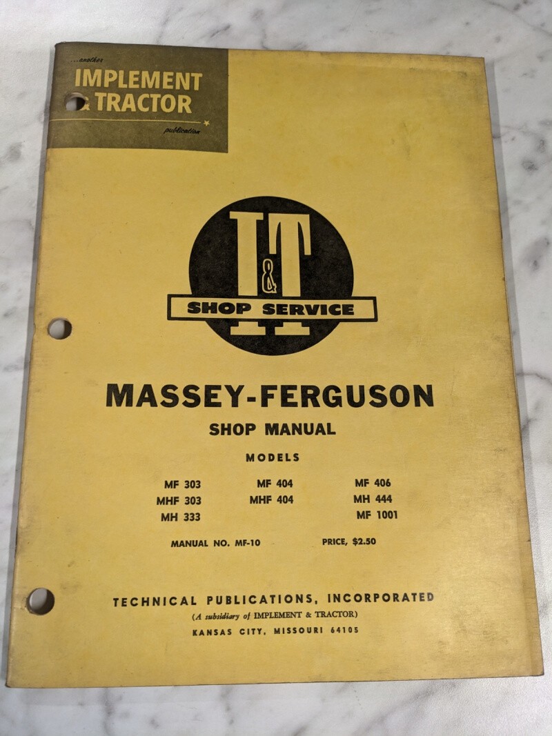 It I&T Tractor Service Repair Manual Massey Ferguson Mf 303 404 444 1001 Mf-10
