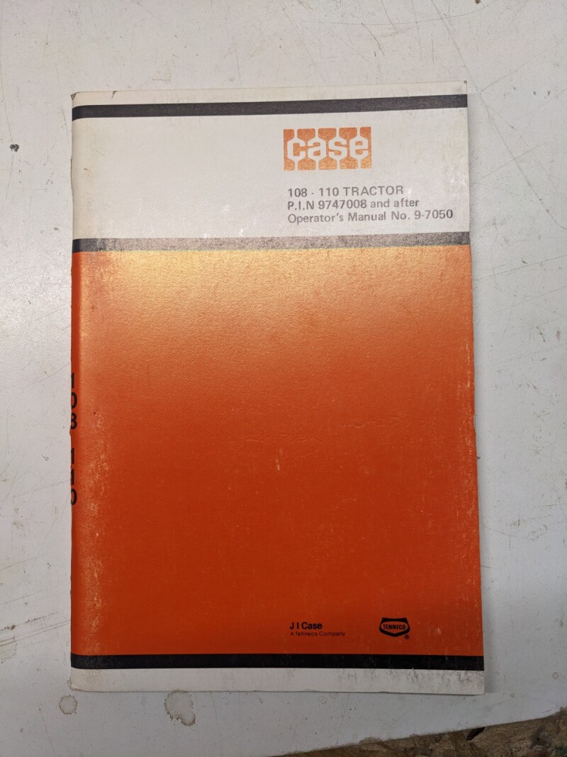 J I Case 108-110 Tractor Operators Manual Maintenance Operation Models 9-7050