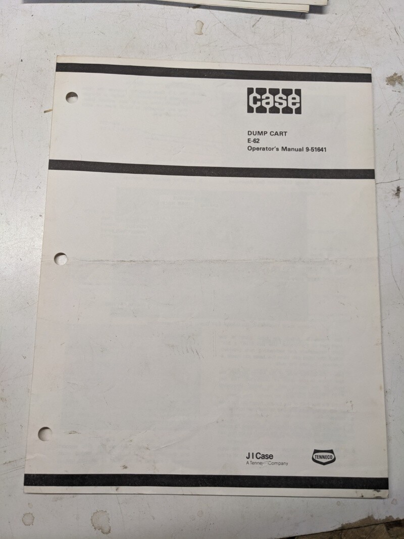 J I Case E-62 9-51641 Dump Cart Tractor Operators Manual Maintenance