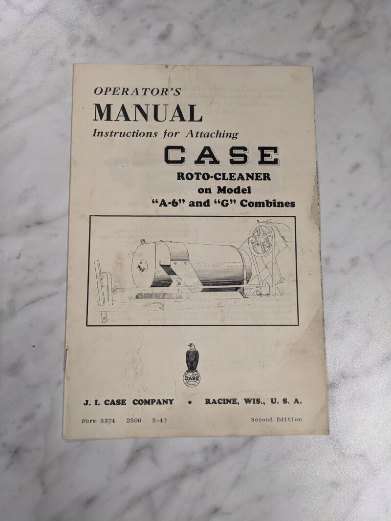 J I Case Operator Service Manual Instruction Roto-Cleaner A-6 G Combine