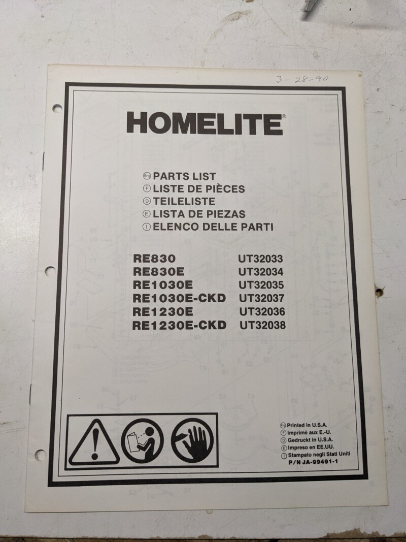 Jacobsen Illustrated Part Catalog Manual List Book Riding Mower Re830E 1030 1230