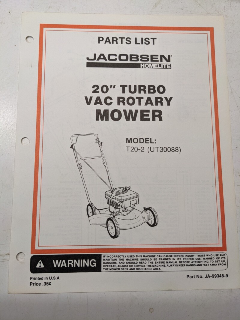 Jacobsen Illustrated Parts Catalog Manual List 20” Turbo Mower T20-2 99348-9