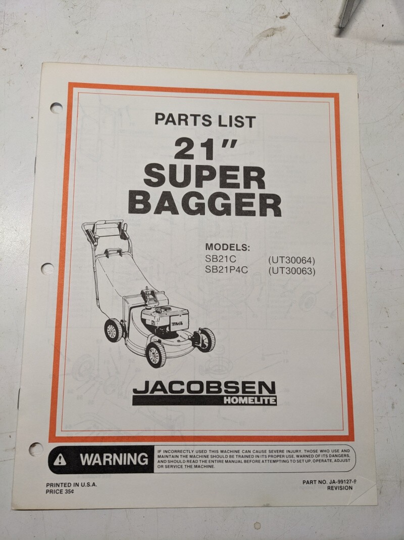 Jacobsen Illustrated Parts Catalog Manual List 21” Super Bagger Sb21P4C 99127-9