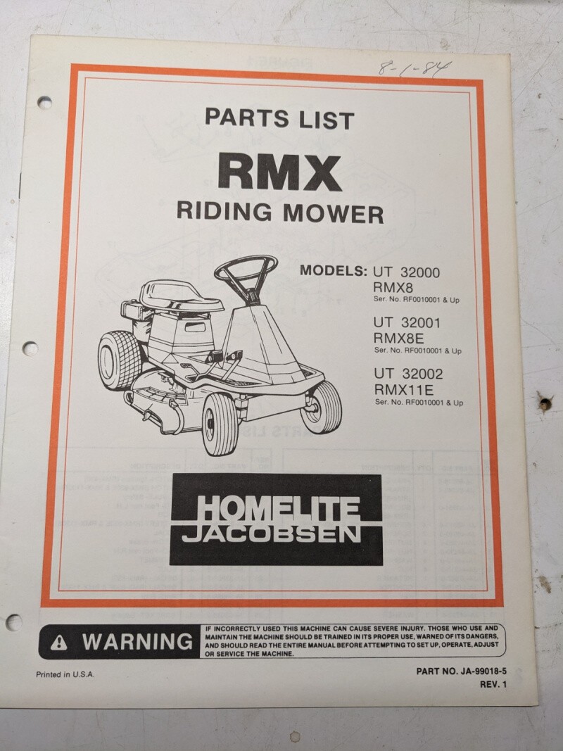 Jacobsen Illustrated Parts Catalog Manual List Riding Mower Rmx 8 11 E 99018
