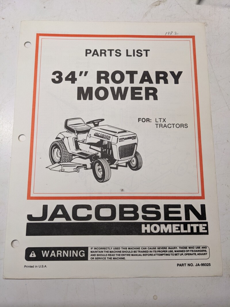 Jacobsen Illustrated Parts Manual List 34” Mower Attachment Ltx Tractors 99325