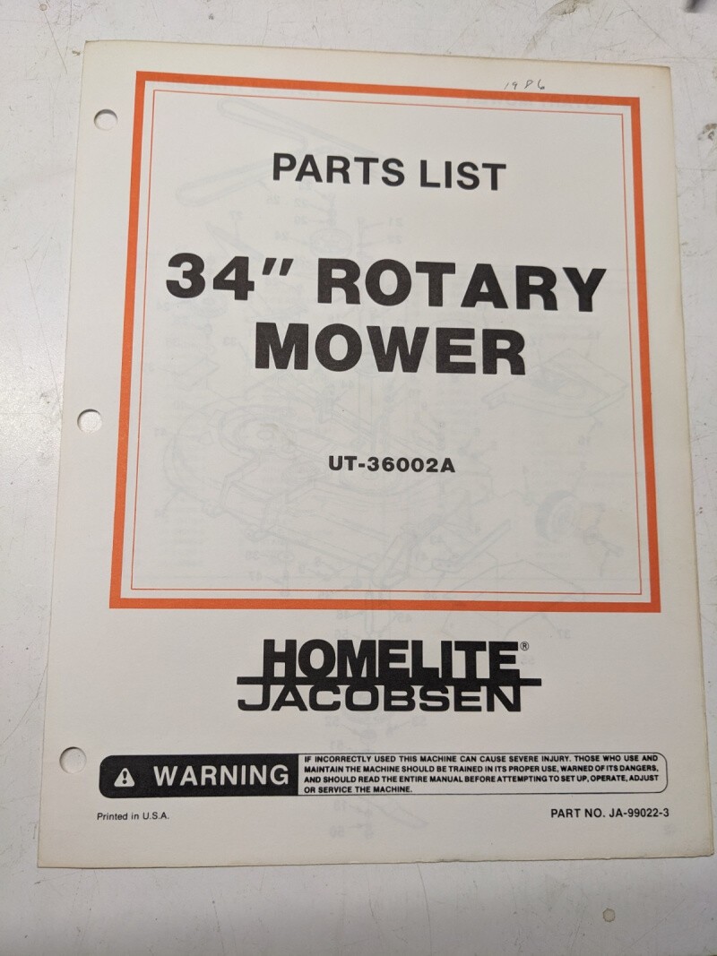 Jacobsen Illustrated Parts Manual List 34” Mower Attachment Tractors 99022-3