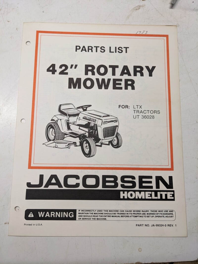 Jacobsen Illustrated Parts Manual List 42” Mower Attachment Tractor Ltx 99324-0