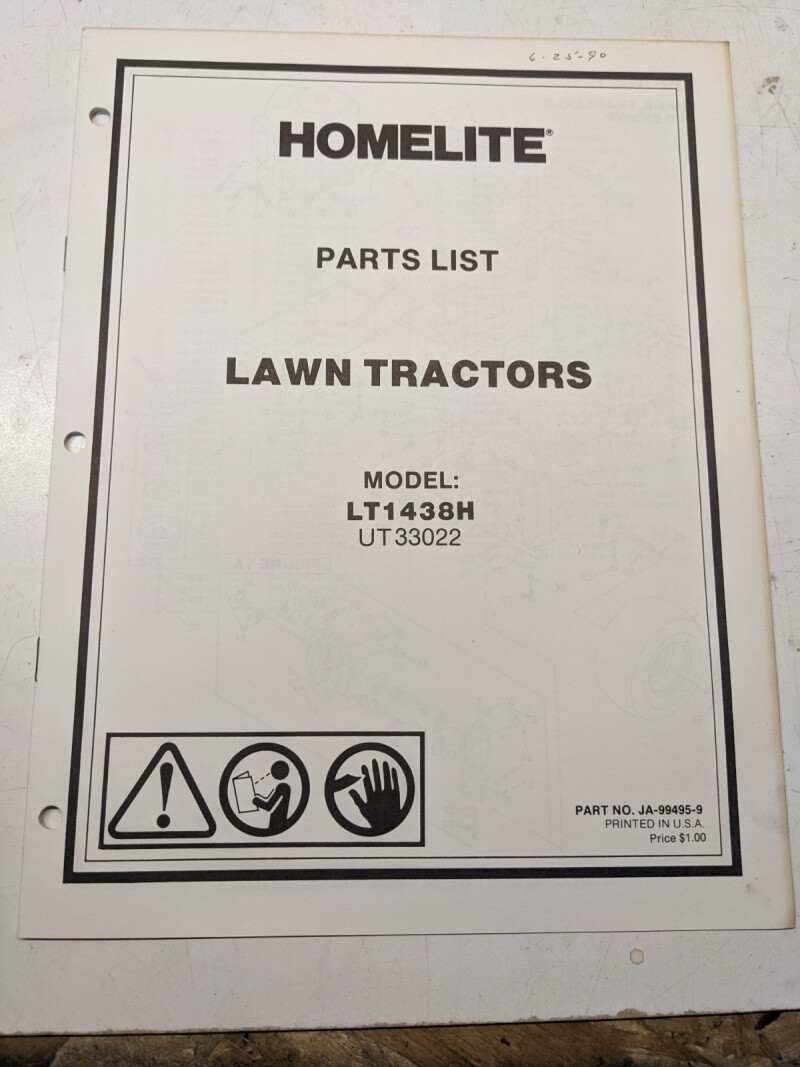 Jacobsen Illustrated Parts Manual List Book Lawn Tractors Lt1438H 99495-9