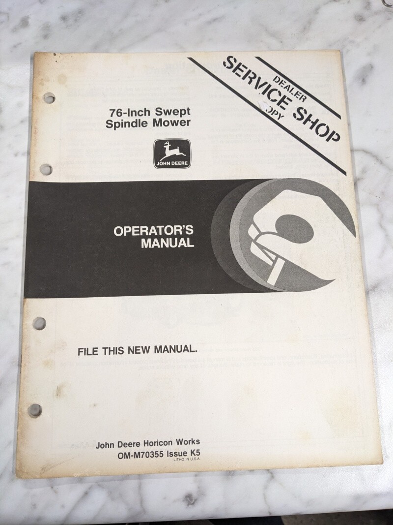 Jd John Deere Service Shop Operator Manual 76” Swept Spindle Mower Om-M70355 K5