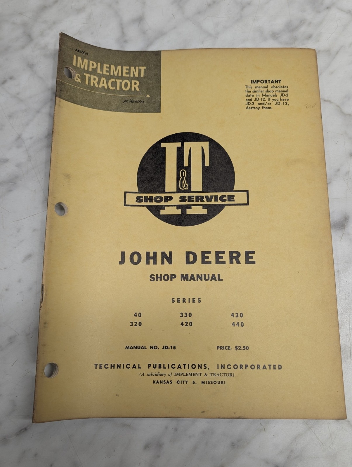 John Deere 40 320 330 420 430 440 Shop Manual I&T Service Repair It Jd-15