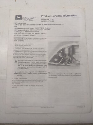 John Deere Installation Instructions Starter Solenoid Wiring Harness M77862 1988