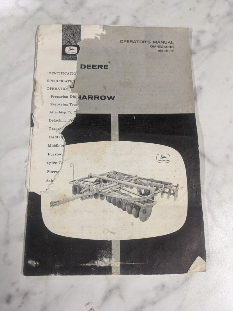 John Deere Jd Disk A W Harrow Operator’S Manual Om-B25036 K7