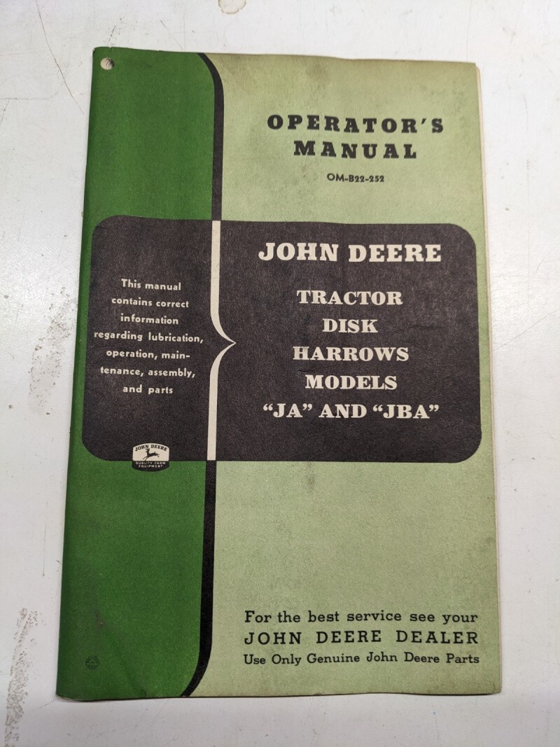 John Deere Jd Operators Manual Service Parts List Om-B22-252 Ja Jba Disk Harrows