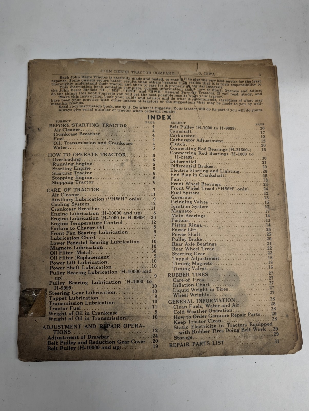 John Deere Jd Operators Manual Tractor H Hn Hnh Hwh General Purpose
