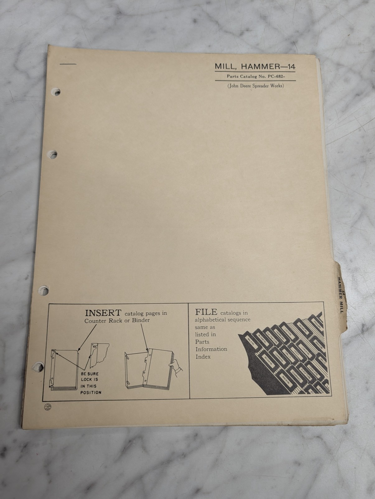 John Deere Jd Parts List Catalog Manual Book #14 Hammer Mill Pc-682- Information