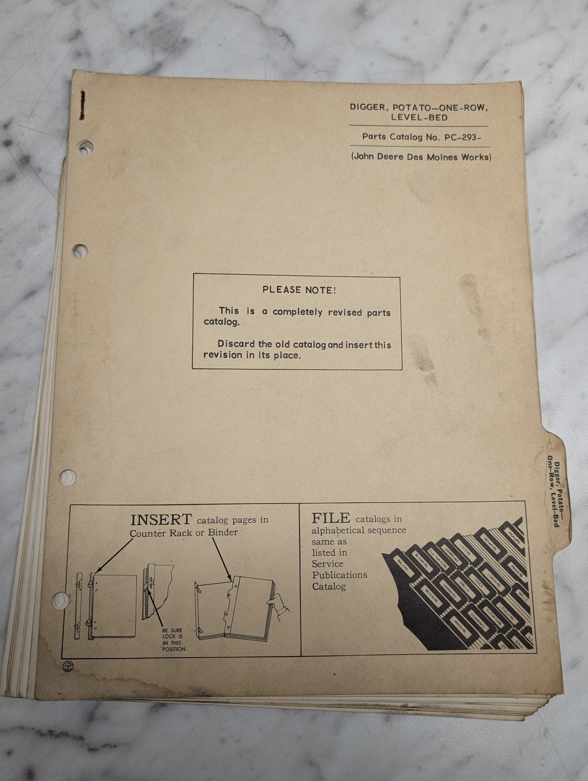 John Deere Jd Potato Digger One Row Pc-293 Parts List Book Catalog Manual