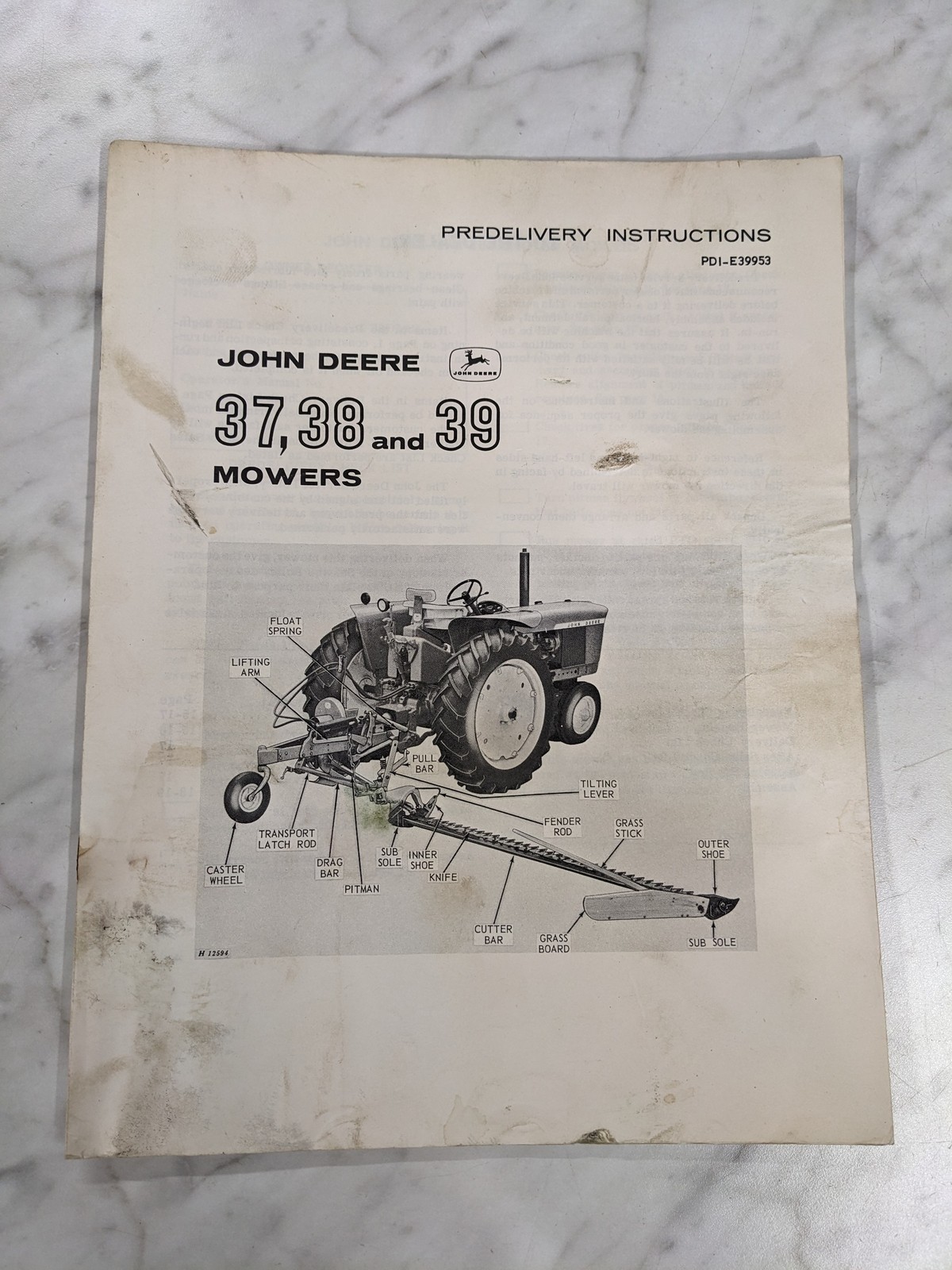 John Deere Jd Predelivery Instruction Manual Pdi-E39953 37 38 39 Mowers