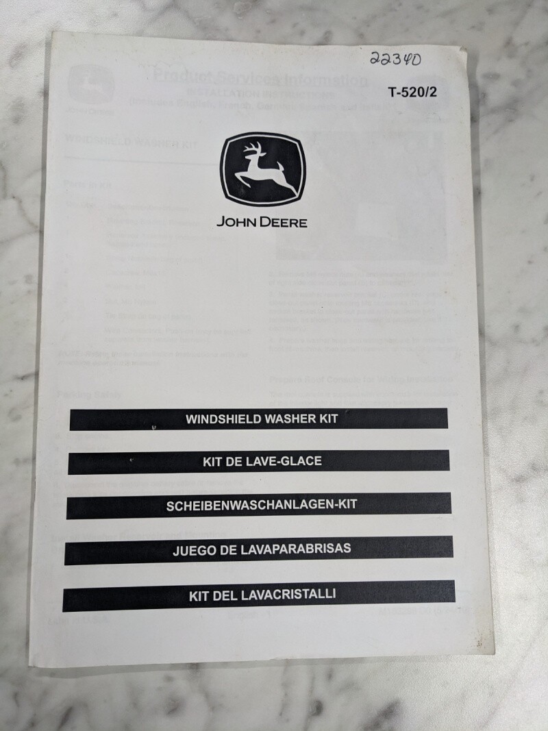John Deere Operator Installation Instruction Manual Windshield Washer Kit T-520