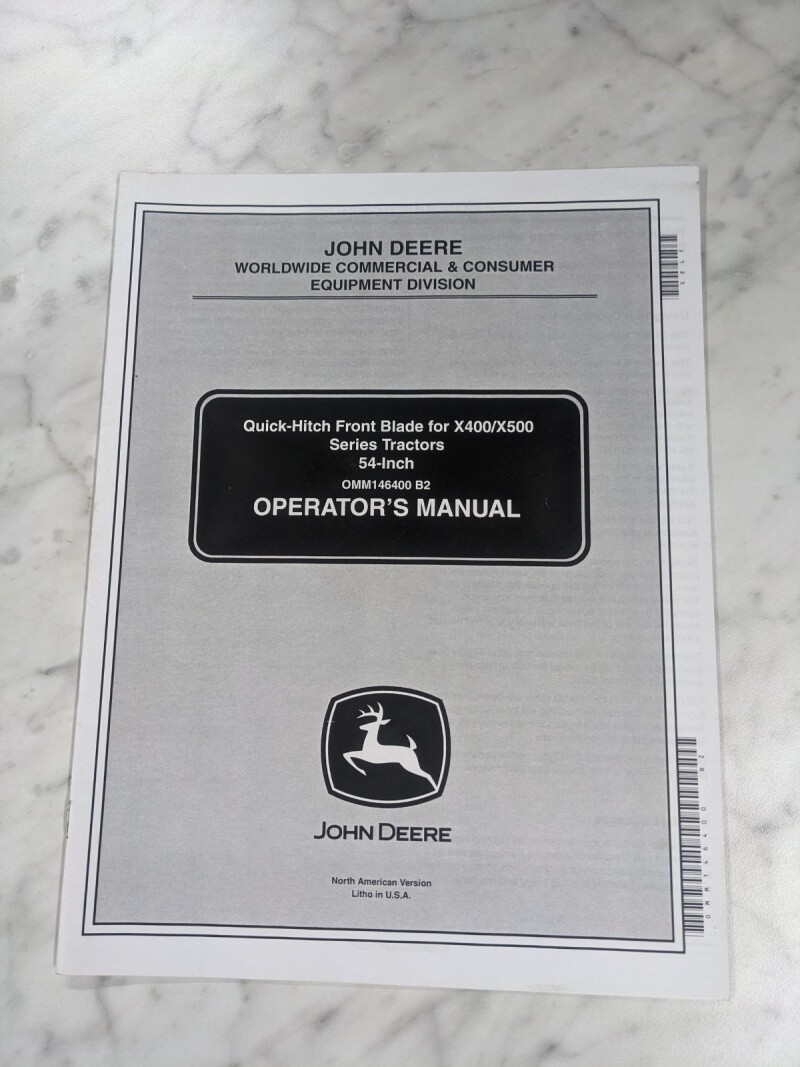 John Deere Operator Manual Quick Hitch Front Blade 54” Omm146400 X400 X500