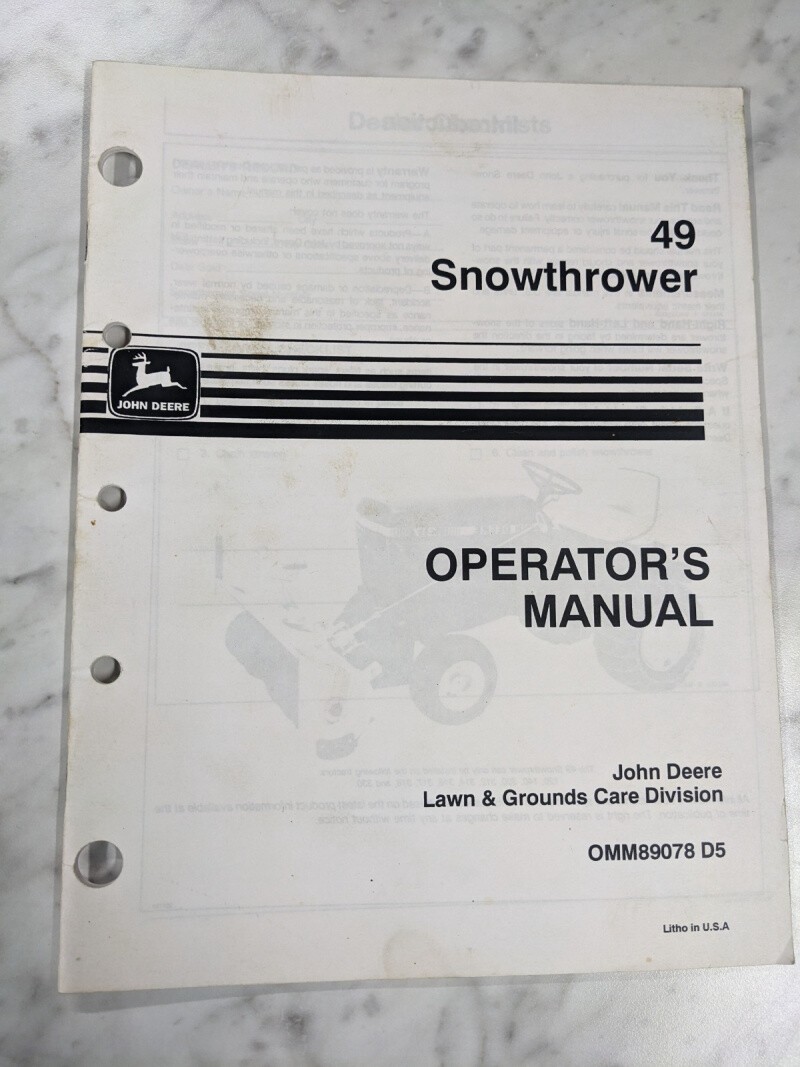 John Deere Operator Service Manual 49 Snowthrower Omm89078 D5