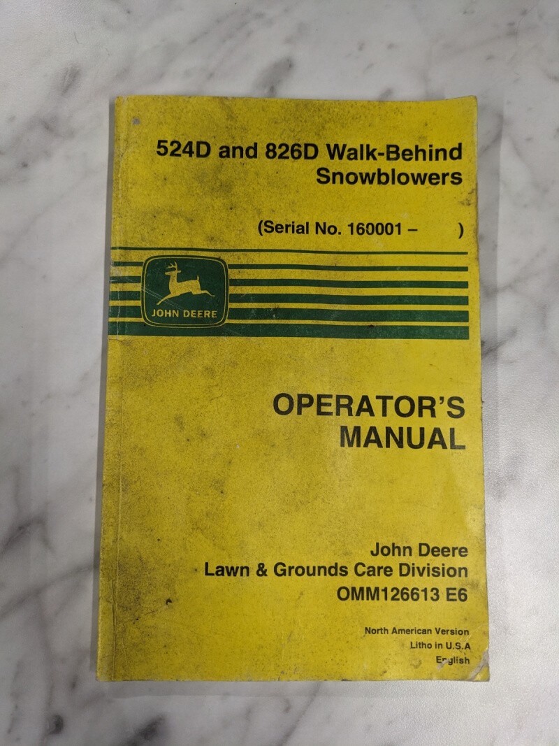 John Deere Operator Service Manual 524D 826D Walk Behind Snowblower Omm126613