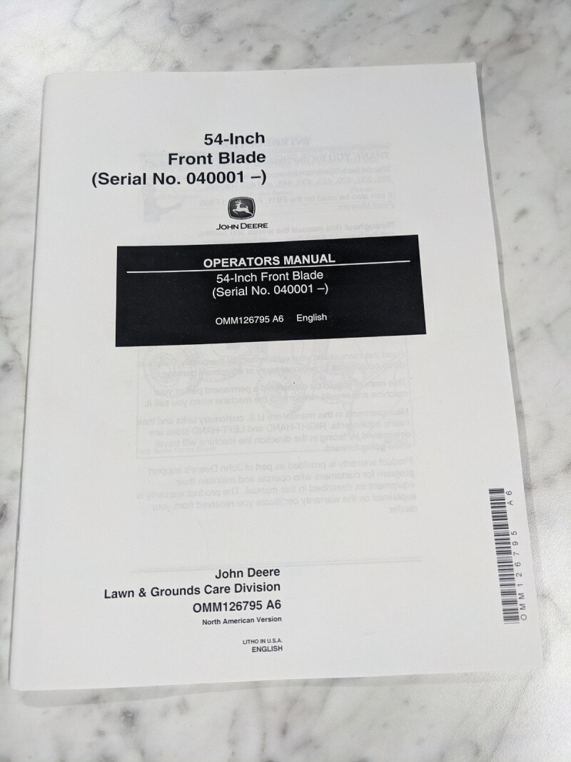 John Deere Operator Service Manual 54” Front Blade Attachment Omm126795 A6