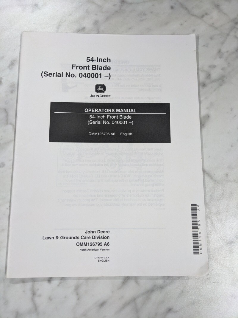 John Deere Operator Service Manual 54” Front Blade Attachment Omm126795