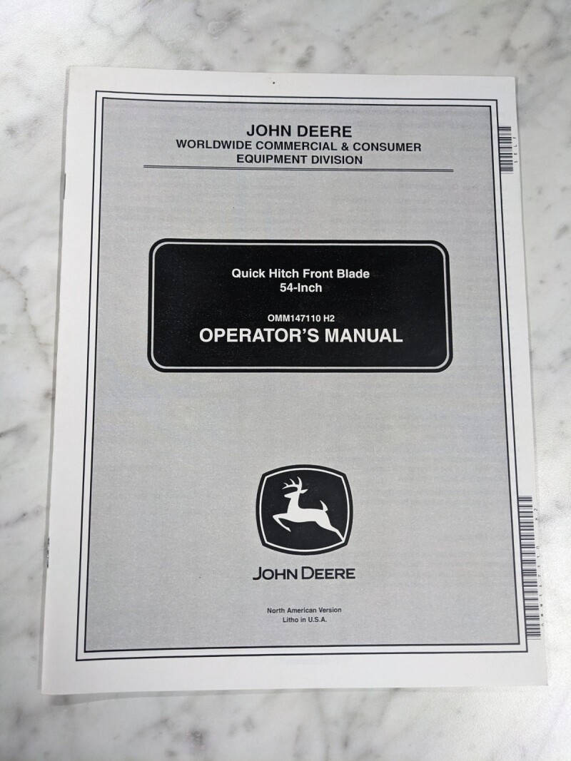 John Deere Operator Service Manual 54” Quick Hitch Front Blade Omm147110 H2