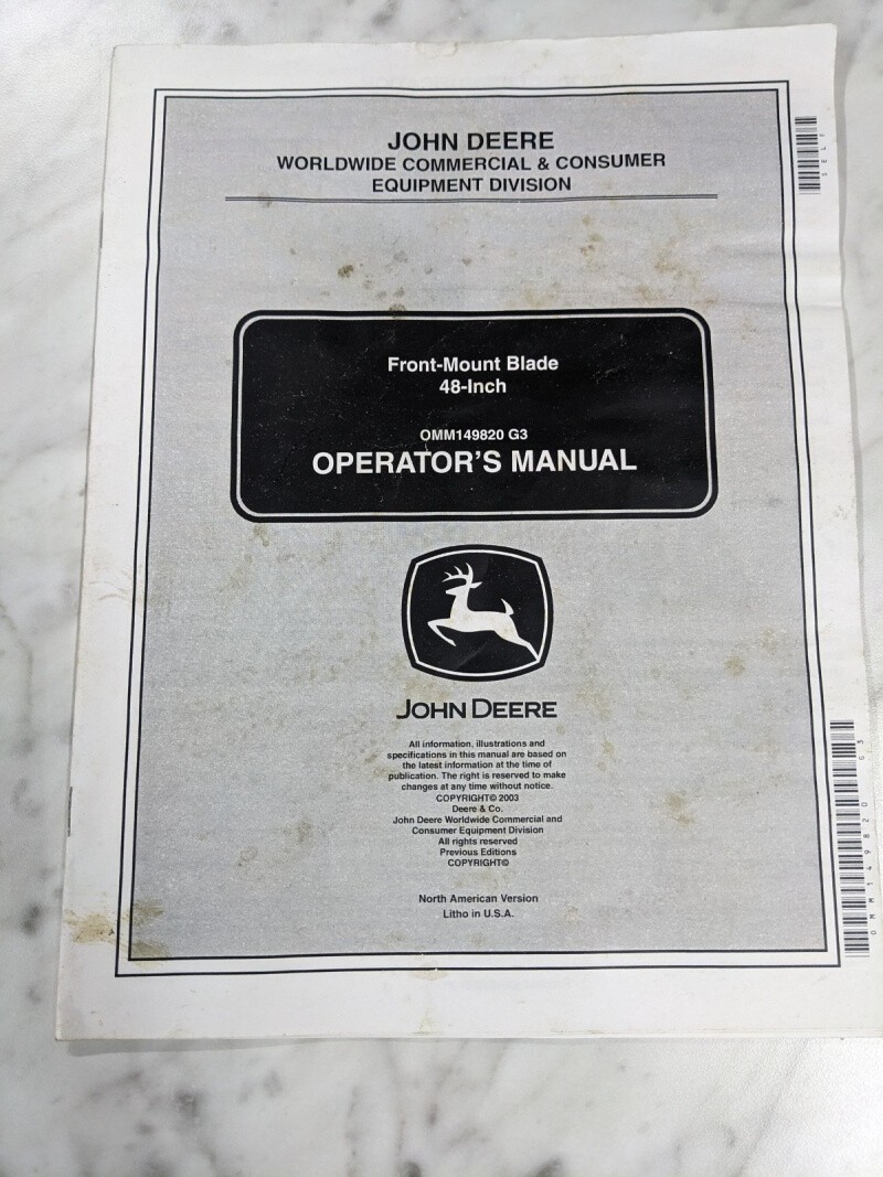 John Deere Operator Service Manual Front Mount Blade 48” Omm149820 Attachment