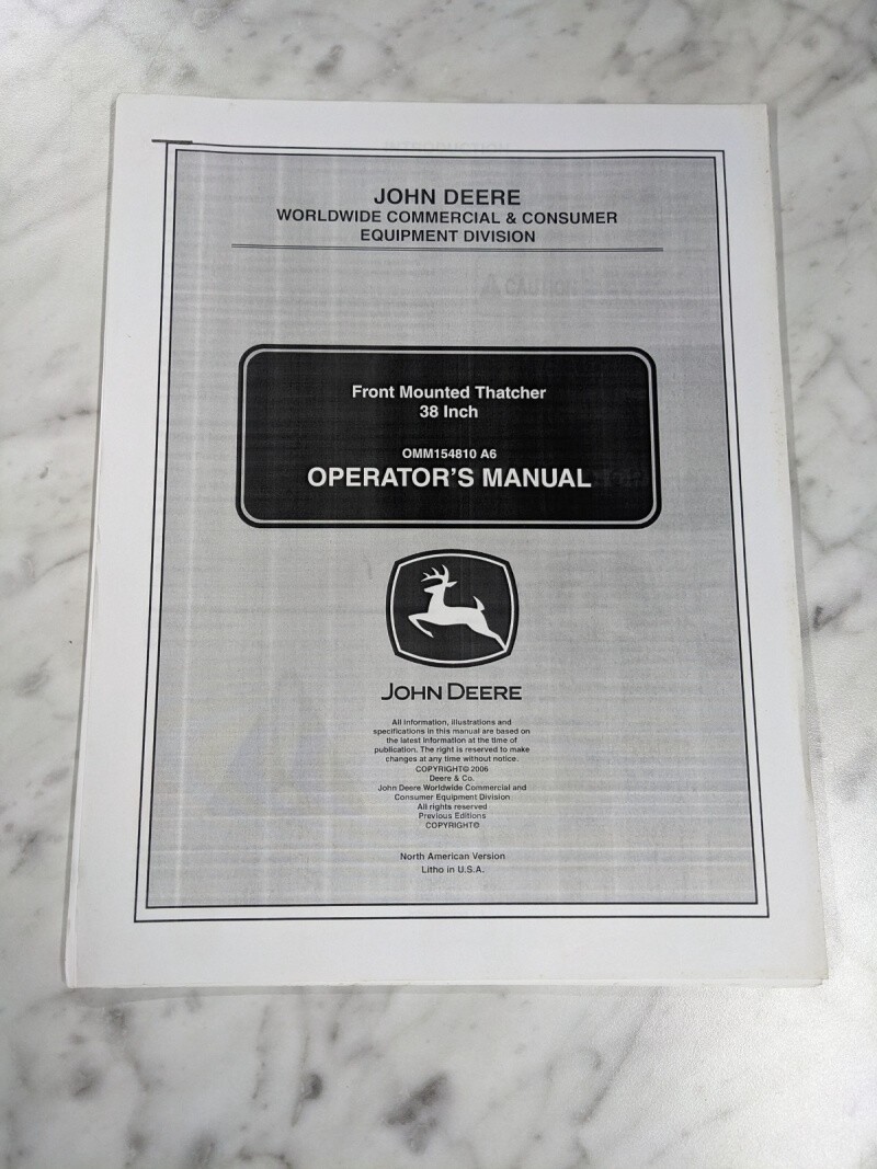 John Deere Operator Service Manual Front Mounted Thatcher 38” Omm154810