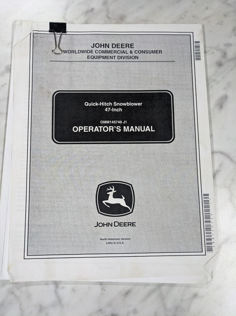 John Deere Operator Service Manual Quick Hitch Snowblower 47” Omm145749