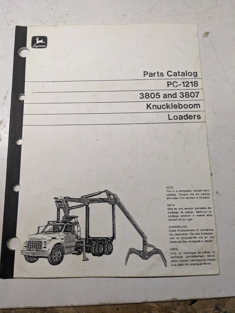 John Deere Parts List Book Catalog Manual 3805 3807 Knuckleboom Loader Pc-1218