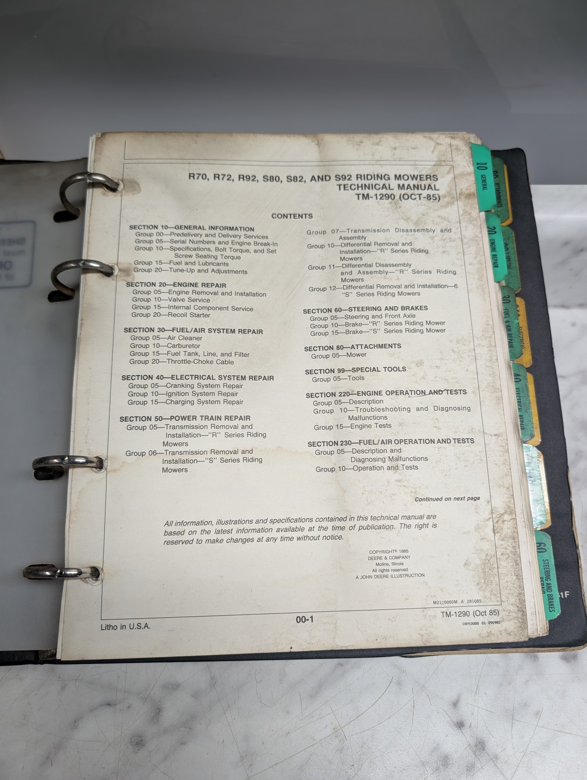 John Deere R70 R72 R92 S82 S92 Riding Mowers Tm-1290 Technical Manual Service