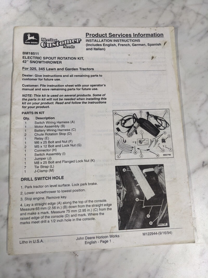 John Deere Service Installation Instruction Manual Bm18511 Electric Rotation Kit