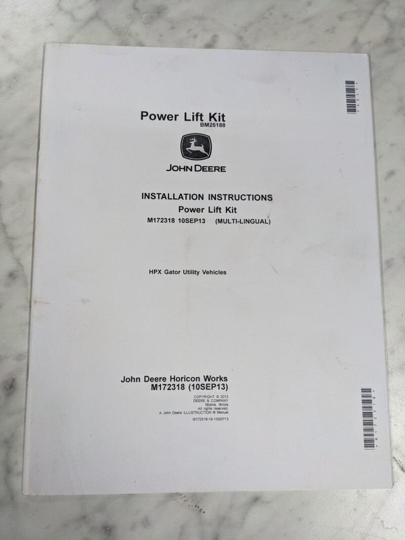 John Deere Service Installation Instruction Manual Power Lift Kit M172318