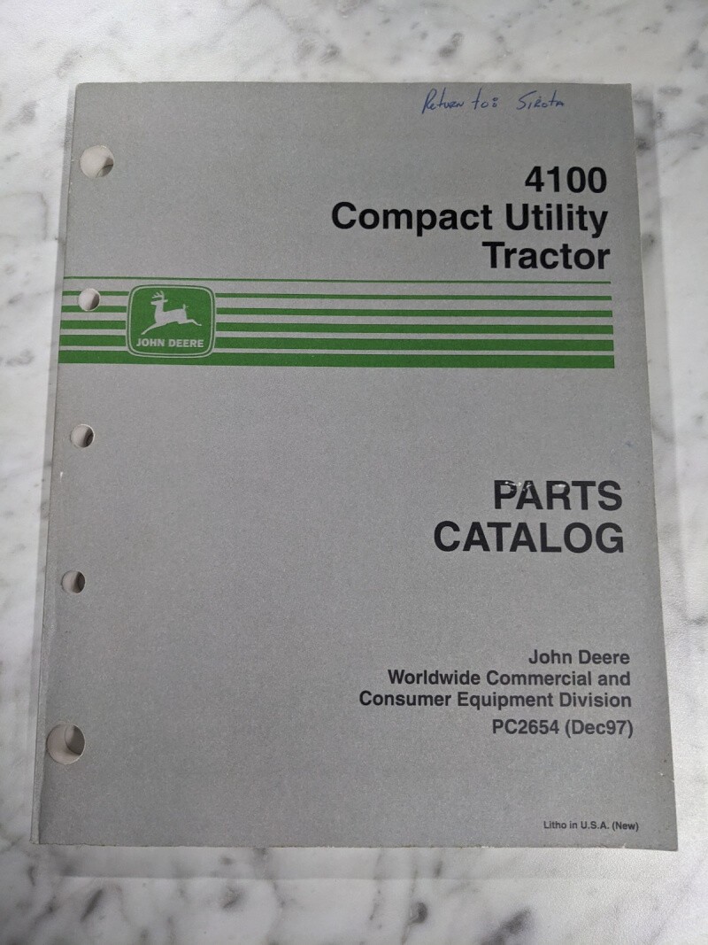 John Deere Service Parts List Manual Catalog Compact Utility Tractor 4100 Pc2654