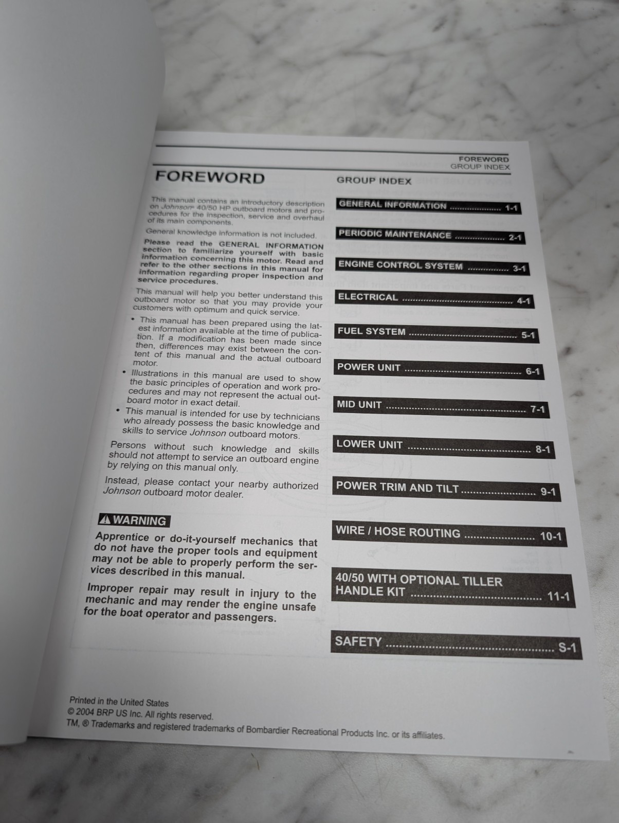 Johnson Evinrude Brp Service Manual Models “So” 40 50 Hp 4 Stroke #5005994