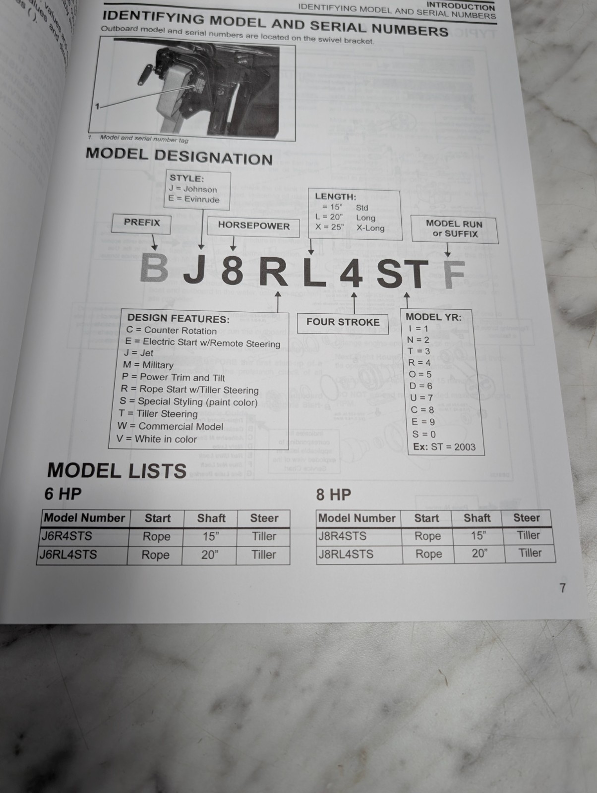Johnson Evinrude Brp Service Manual Models “St” 6 8 Hp 4 Stroke #5005471
