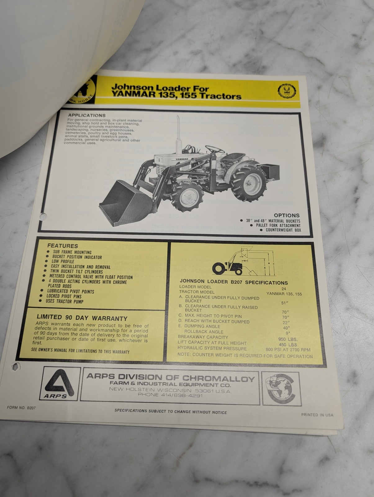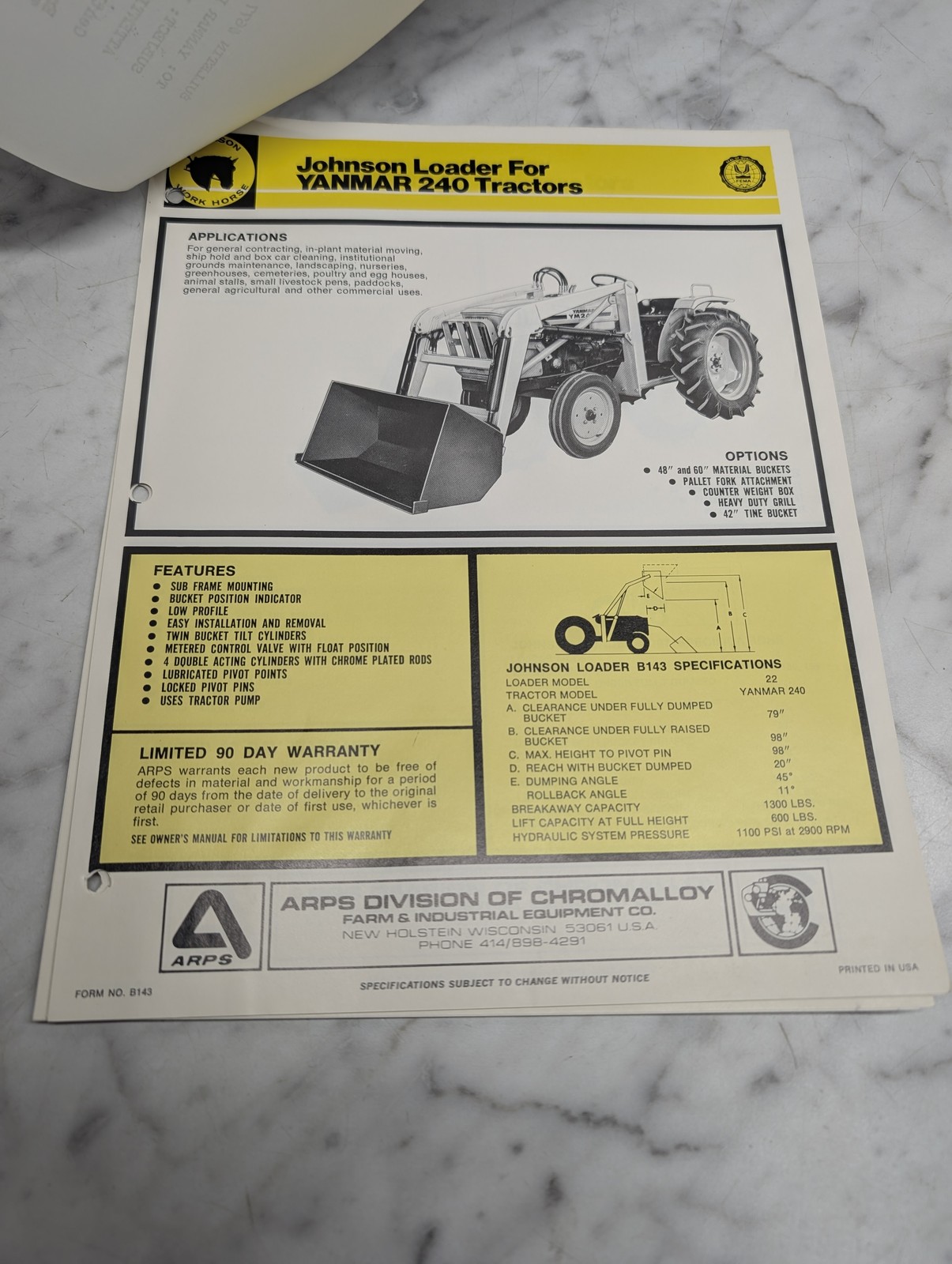 Johnson Loader Yanmar 240 Tractors B143 Specifications Catalog Literature Specs