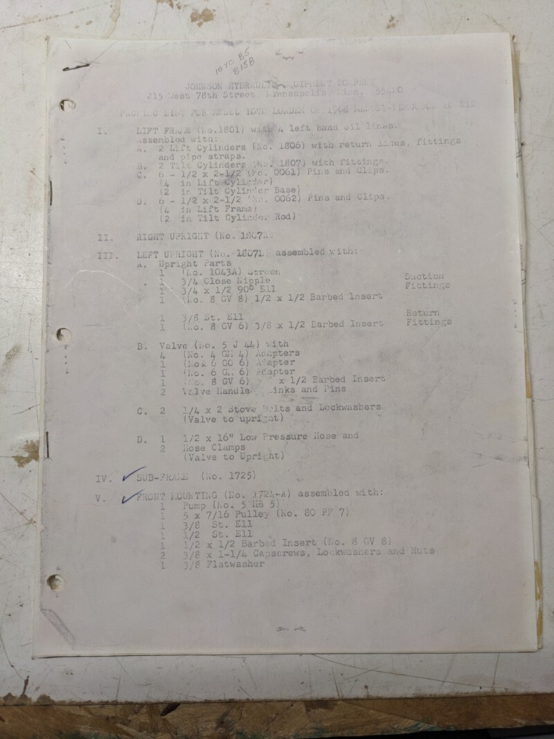 Johnson Work Horse 10Tc Loader Massey Ferguson Tractor 1968 Diagrams Parts List