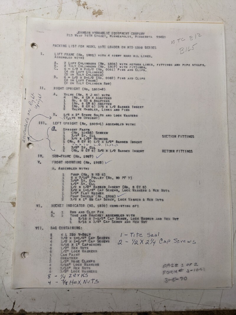 Johnson Work Horse 10Tc Loader Mtd 1200 Series Tractor Diagrams Parts List