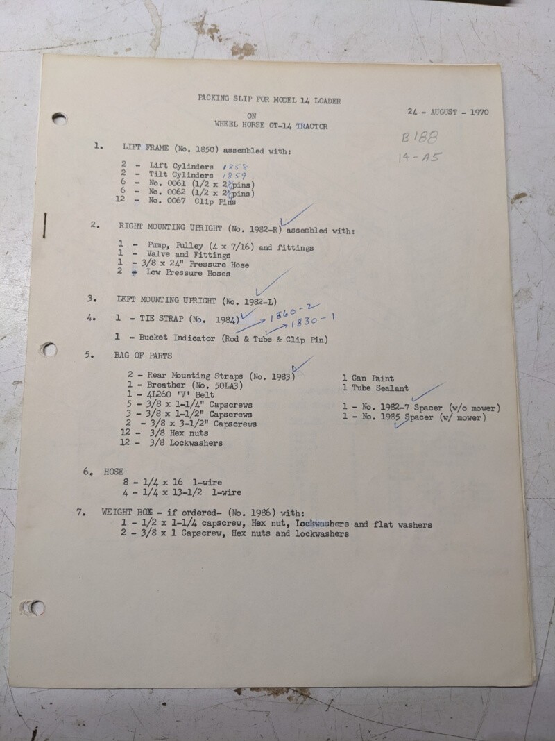 Johnson Work Horse 14 Loader Wheel Horse Gt-14 Tractor 1970 Diagrams Parts List