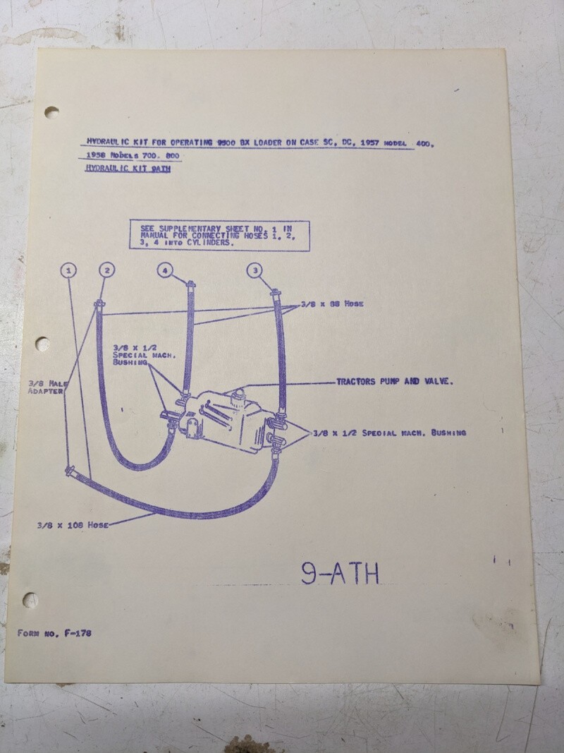 Johnson Work Horse Hydraulic Kit 9500 Bx Loader Case Sc Dc 1957 400 1958 9-Ath